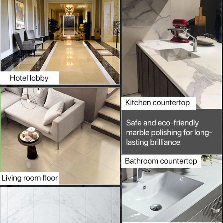 Versatile Application: Whether you're tackling tough stains in the kitchen, bathroom, or any other area of your home, our marble cleaner is up to the task. Its versatile formula can be used on both polished and unpolished marble surfaces, providing comprehensive cleaning and protection wherever it's needed.