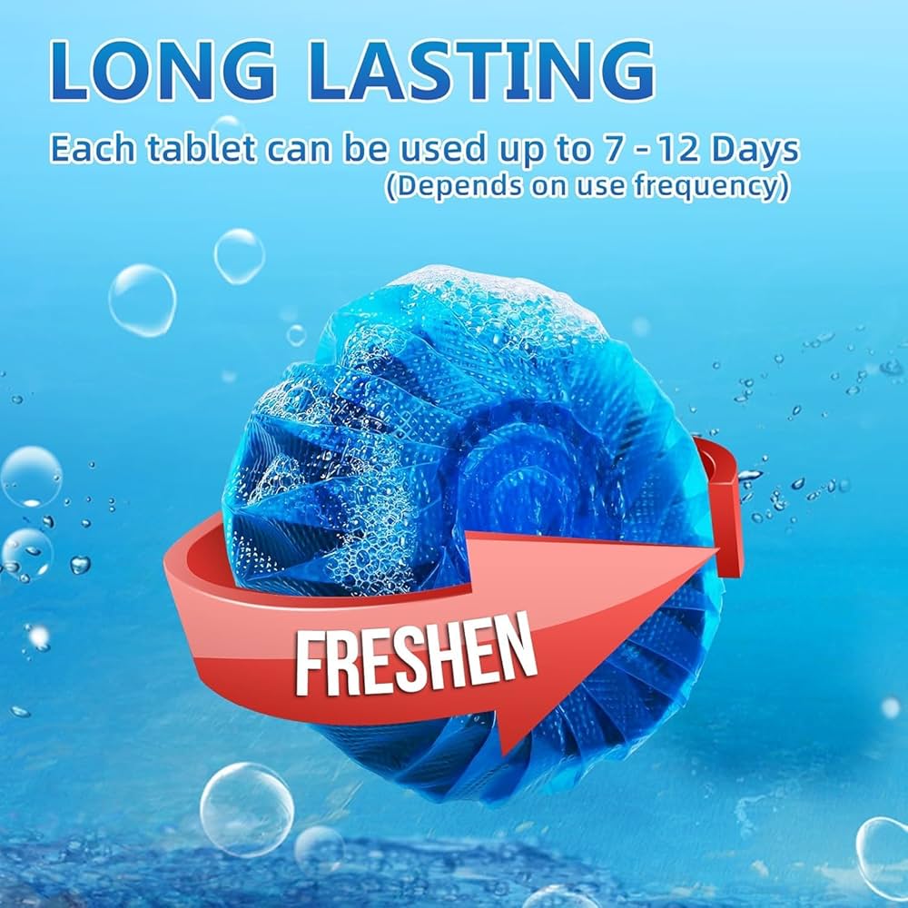 Say goodbye to scrubbing and hello to a sparkling clean toilet with our Automatic Toilet Bowl Cleaner Tablets. Designed for convenience and powerful performance, these blue cleaning tablets work with every flush to eliminate stains, fight odors, and keep your toilet bowl fresh and hygienic for weeks.